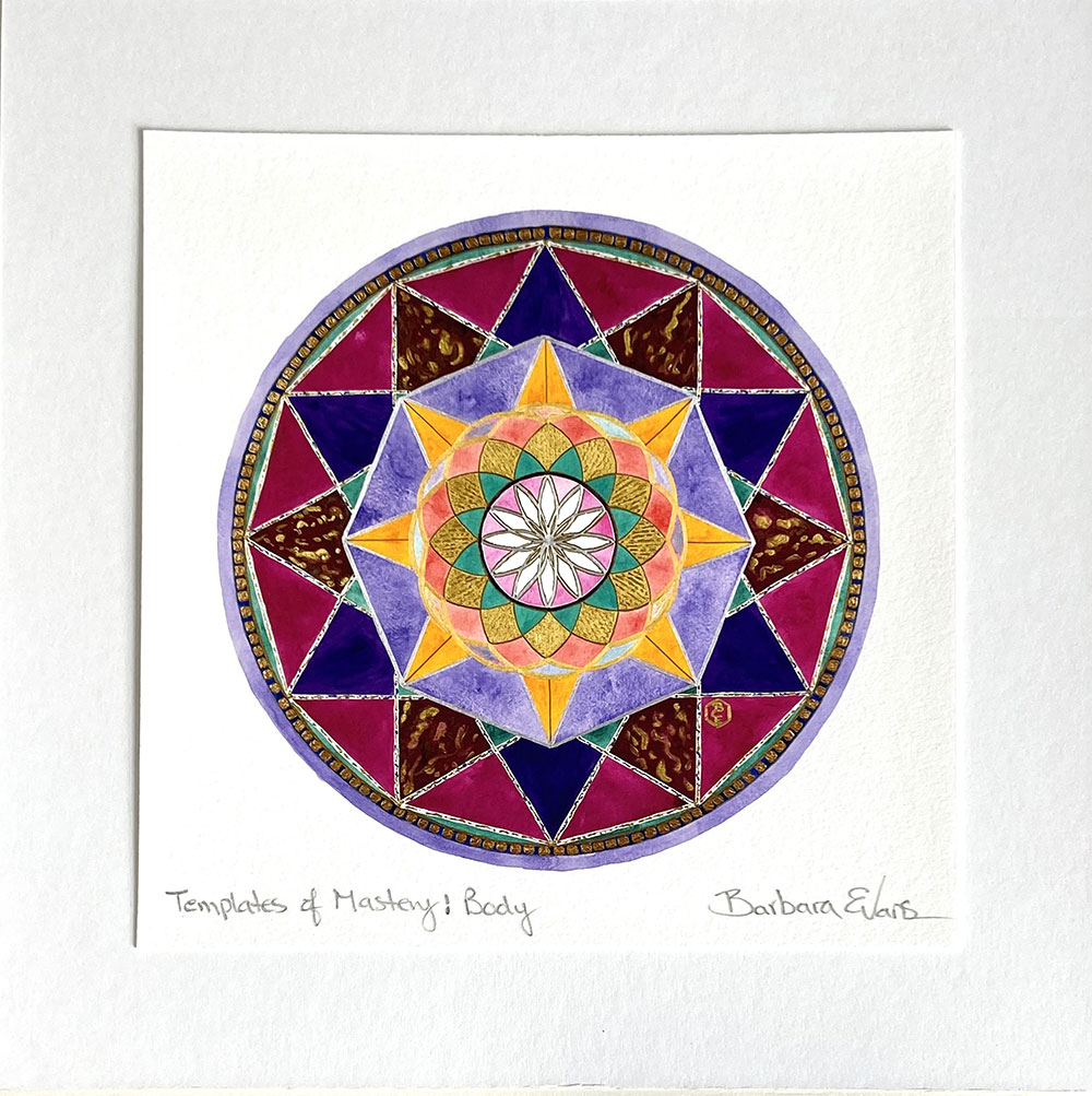 The Templates of Mastery are available as 5 breath-taking giclee prints, produced with the highest quality inks and papers. Each “mini” paper print (image 6” x 6”; board 10” x 10”) is signed by Barbara and mounted on a white board, ready for framing; it includes a certificate of authenticity and an informative description of the image.