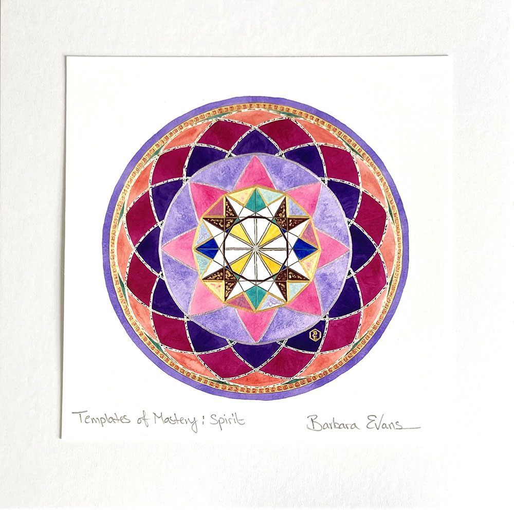 The Templates of Mastery are available as 5 breath-taking giclee prints, produced with the highest quality inks and papers. Each “mini” paper print (image 6” x 6”; board 10” x 10”) is signed by Barbara and mounted on a white board, ready for framing; it includes a certificate of authenticity and an informative description of the image.